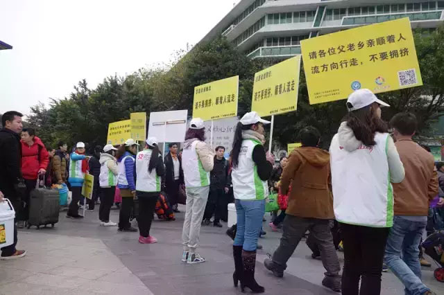 2月2日中午,青宫社工加入了越秀团区委发起的支援广州火车站志愿大军,于13:15时正式对外发布了招募2月2日-6日广州火车站现场志愿者的消息。13:30时我们就已经收到10名会员志愿者的报名,并于当天下午14:00一起赶赴广州火车站上岗。截至昨晚19:00,我们共招募志愿者40逾名,不少市民也致电中心了解服务要求,报名至今持续,着实让我们倍感温暖。今天,青宫社工与志愿者们继续在火车站现场为旅客提供服务。而我们的服务时段也进一步明确为每天9:00-14:00、14:00-19:00两个时段。