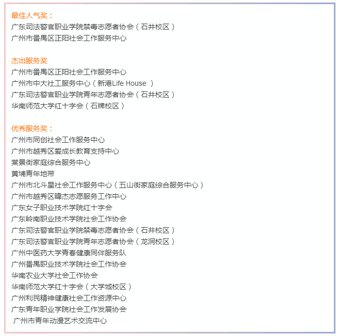会议诚邀广州市青年文化宫副主任王嘉、广州市疾控中心徐慧芳科长、华南农业大学社会工作系导师林诚彦老师、广州中医药大学团委孟凡范老师和广东青年职业技术学院社会工作系导师陈雪老师担任此次总结会议的评审嘉宾。