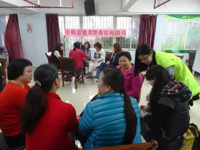 为了进一步普及禁毒知识宣传教育,提高社区居民的识毒、拒毒意识,棠景家综的社工们紧锣密鼓地安排了一系列形式多样的禁毒宣传活动,在社区掀起了一阵又一阵禁毒热潮。 1社区禁毒齐参与——巾帼志愿者禁毒宣传活动 社区参与,有我一份。棠景家综组织了二十多位社区靓姐义工,开展了主题为“靓姐参与社区建设实训活动-社区需求及问题探索培训”的活动,其中一项重要的实训活动便是针对棠景街的禁毒问题而开展的“巾帼志愿者禁毒宣传活动”。