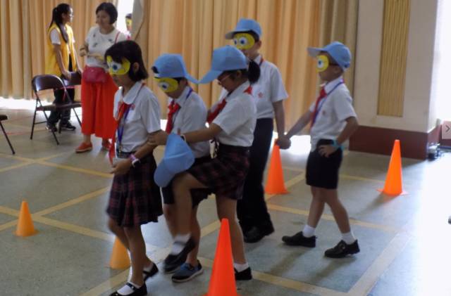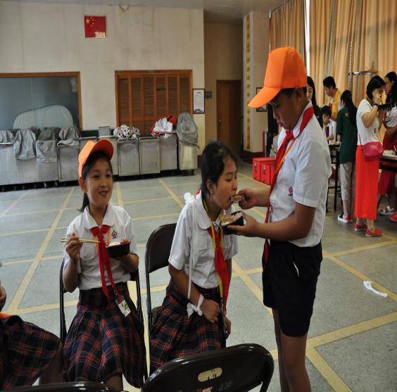 学长们通过抽签进行爱心午餐,队员扮演各种身体残障,通过相互帮助吃午餐,从中学会帮助他人和接受他人的帮助。