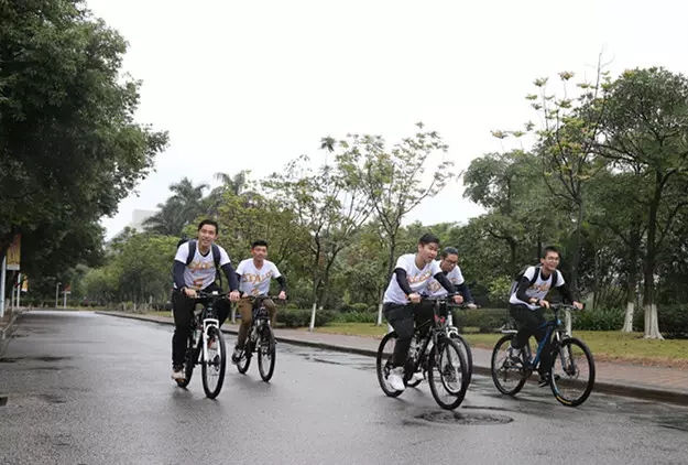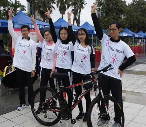 金融骑行宣传达人们出发啦!金融骑行箐英挑战赛主要通过团队形象、骑行时数、定点快闪集赞、金融知识问答四个环节组成,同学们都把自己“打扮”得帅靓正之余,各自队名更是“奇异”有“SexLess”、“青骑天下”、“飞鱼骑战队”、“大家都队”... ...完全忘记了那冷、那风、那雨。