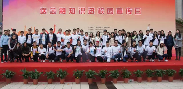 由广东省银监局、广东省教育厅、广东银行同业公会联合主办,广州市青宫社会工作服务中心、广州大学协办,中国银行业协会、广州市公安局、广东消费者委员会、广东银行业会员银行、大学城15所院校共同参与的“2016年金融知识进校园集中宣传日活动”在大学城举行,相关部门相关负责人以及来自各高校的教师、学生代表近1300人参加了活动。启动仪式上,广东银监局副局长谭震、广东省教育厅副巡视员陈健分别代表组织机构致辞。倡议金融机构肩负起维护校园金融安全的社会责任;倡议社会各界帮助在校学生培养科学的金融消费意识;倡议青年学生践行社会主义核心价值观,理性消费,珍视信用,加强金融知识学习。