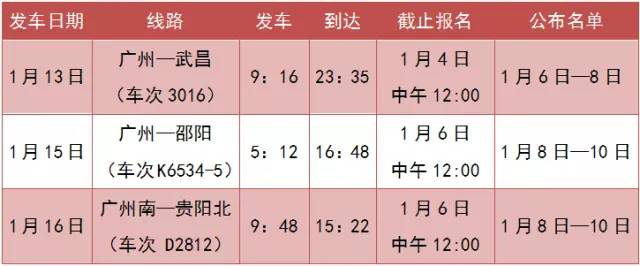 爱心汽车包车(免费) 发车时间和地点 2017年1月20日于广州发车 报名截止时间 1月11日中午12:00 公布免费乘车名单时间: 1月12—13日