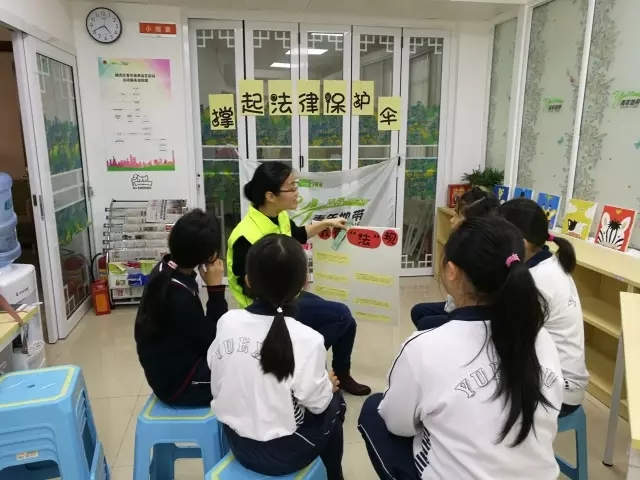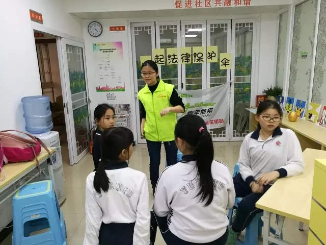 2017年3月开始,越秀区青年地带联合越秀区人民检察院等在越秀区各种小学开展法制进校巡讲活动,取得不错反响。 为进一步丰富青少年的法治知识,2017年4月13日,越秀区流花街站在站点开展“撑起法律保护伞”法治教育小组。