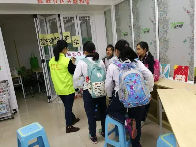 社工通过比赛形式让组员学习基本的未成年人法律条例,比比谁记得快,记得完整。有了竞争,组员们都积极参与,学到了不少法律知识呢。