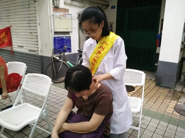 艾灸推拿摊位通过联合广州市青少年社会实践中心,邀请广州中医药大学诚济服务队的志愿者为居民提供了艾灸、推拿、按摩和日常保健咨询服务。