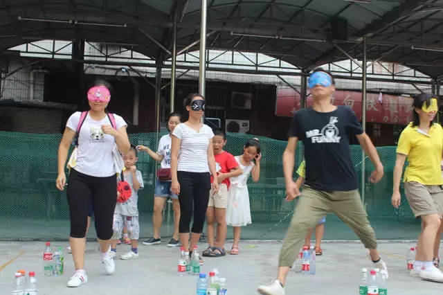 你是我的眼 游戏玩法:大人带着眼罩听从孩子的指令,从起点躲过重重障碍,没有被“炸”而且先到达终点的为胜!