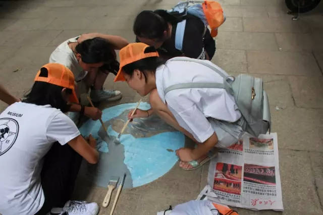 同学们刚开始涂鸦给沙井盖上色