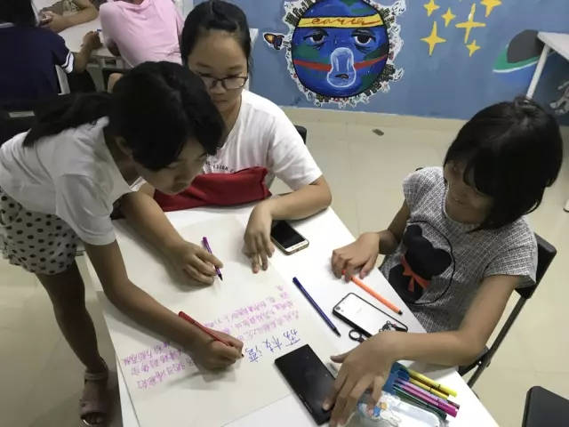 “玩转涂鸦”户外活动 8月5日,终于迎来了我们期待已久的“玩转涂鸦”活动。上午,社工召集青少年们来到家综的书画室进行涂鸦前的培训,同学们都听得十分认真。 这次“玩转涂鸦”是以环保为主题开展的,让青少年了解节约、节能、可持续的知识,不少青少年通过上网查资料和发挥自己的创意,确定以地球、绿色、标识语为沙井盖的图案。