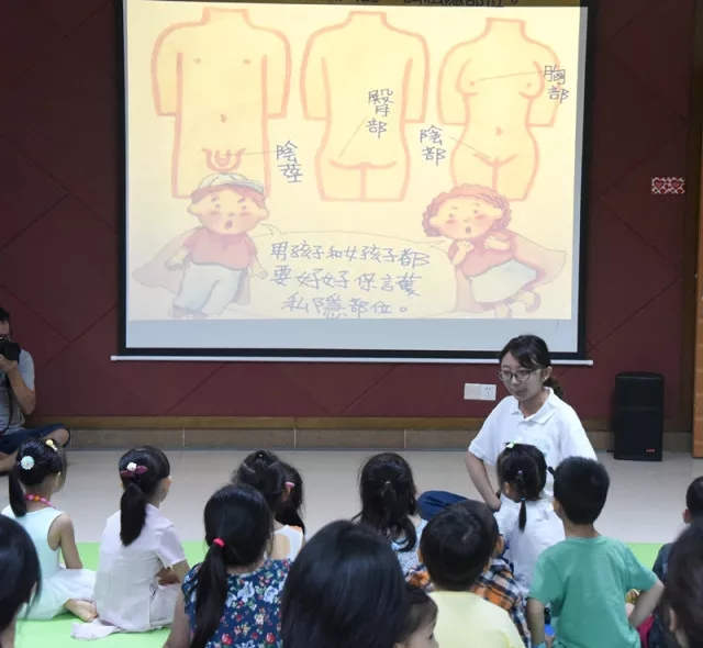 第一次体验课的主题是“未成年人性教育与预防性侵犯”,30名家长及其子女现场“听讲”。课堂上,孩子欢乐学习,家长热烈讨论。