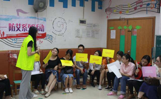 社工介绍艾滋病基本知识以及广州市疫情情况。