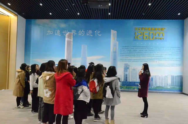 第六站,同学们参观日立电梯(中国)有限公司。在充满现代气息的展厅里,通过裸眼3D视频和各种实物体验感受到企业对精益求精的追求以及科技以为人本。