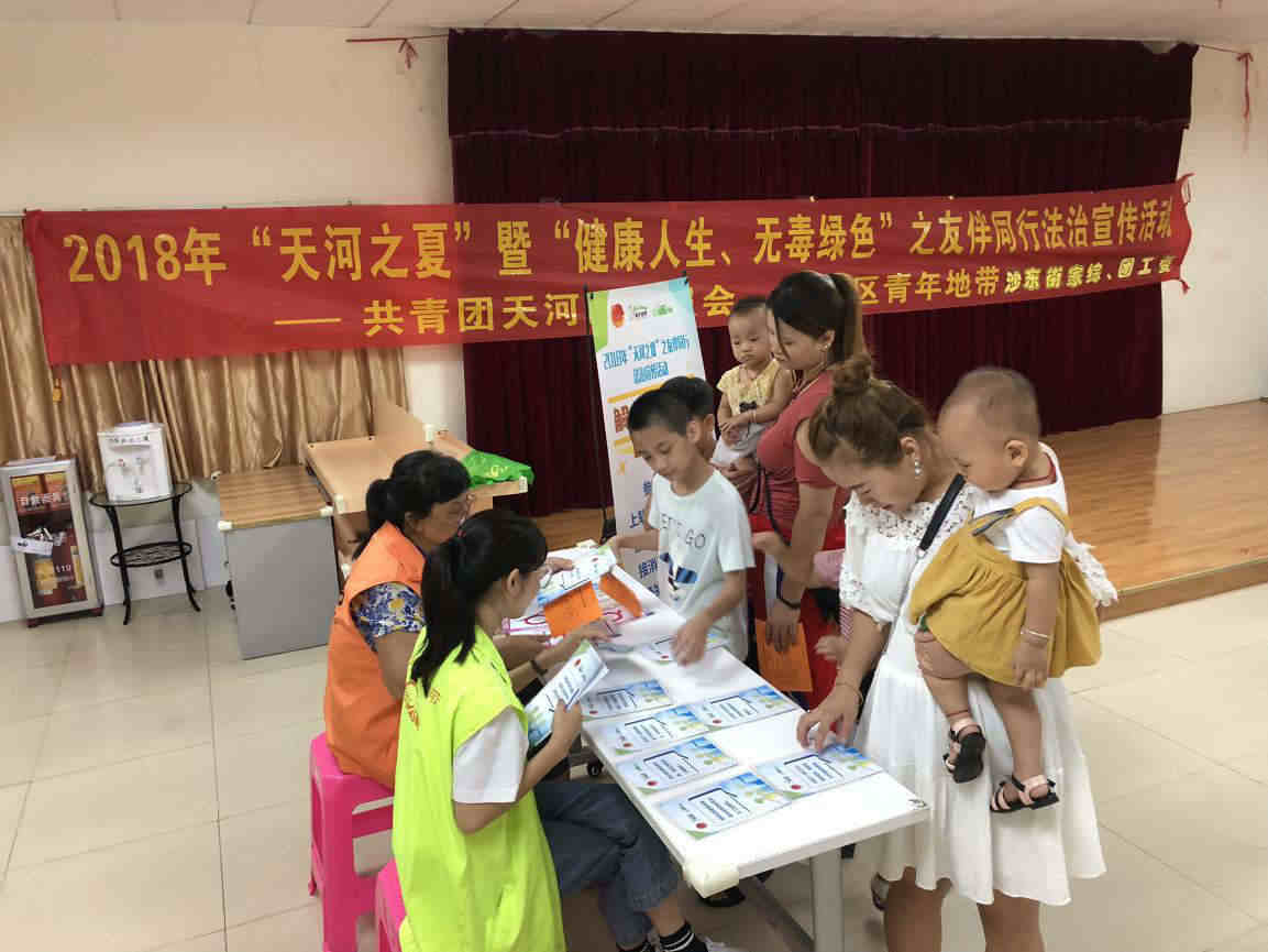 继“天河之夏”暨“健康人生、无毒绿色”之友伴同行法治宣传活动成功进入元岗街、沙河街之后,天河青年地带天河中学站的社工们近日继续开展“天河之夏”社区活动,分别是:沙东街、长兴街、天河南以及冼村街。 为了能够引导社区青少年以及居民学习辨别和树立正确的朋辈关系,营造全民朋辈正向交往的良好社区环境。由共青团天河委员主办、天河青年地带承办、天河区沙东街、长兴街、天河南以及洗村街道协办的2018年“天河之夏”暨“健康人生、无毒绿色”之友伴同行法治宣传活动,分别于2018年8月21日、8月23日、8月25日以及8月27日顺利开展。