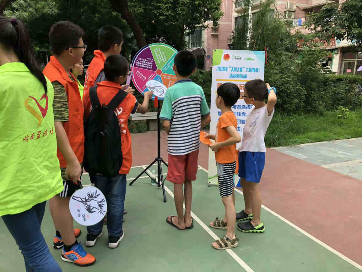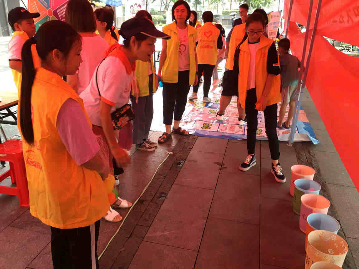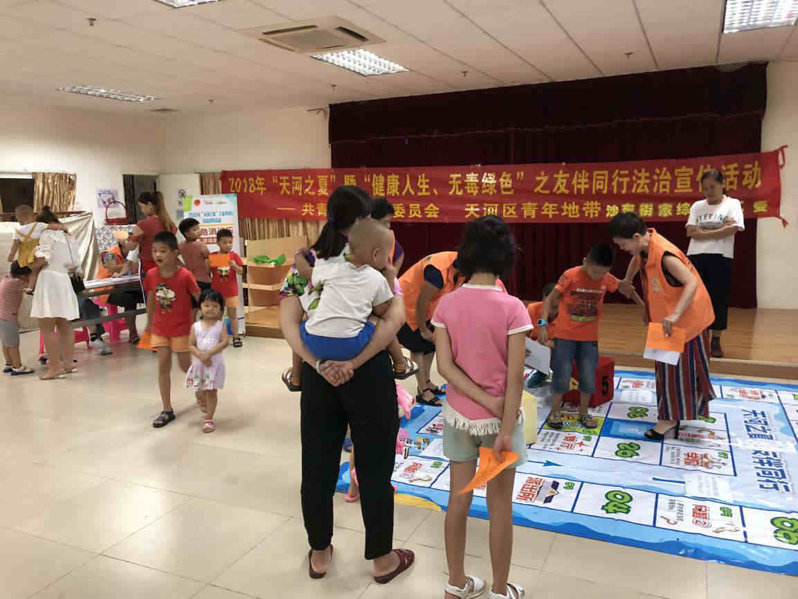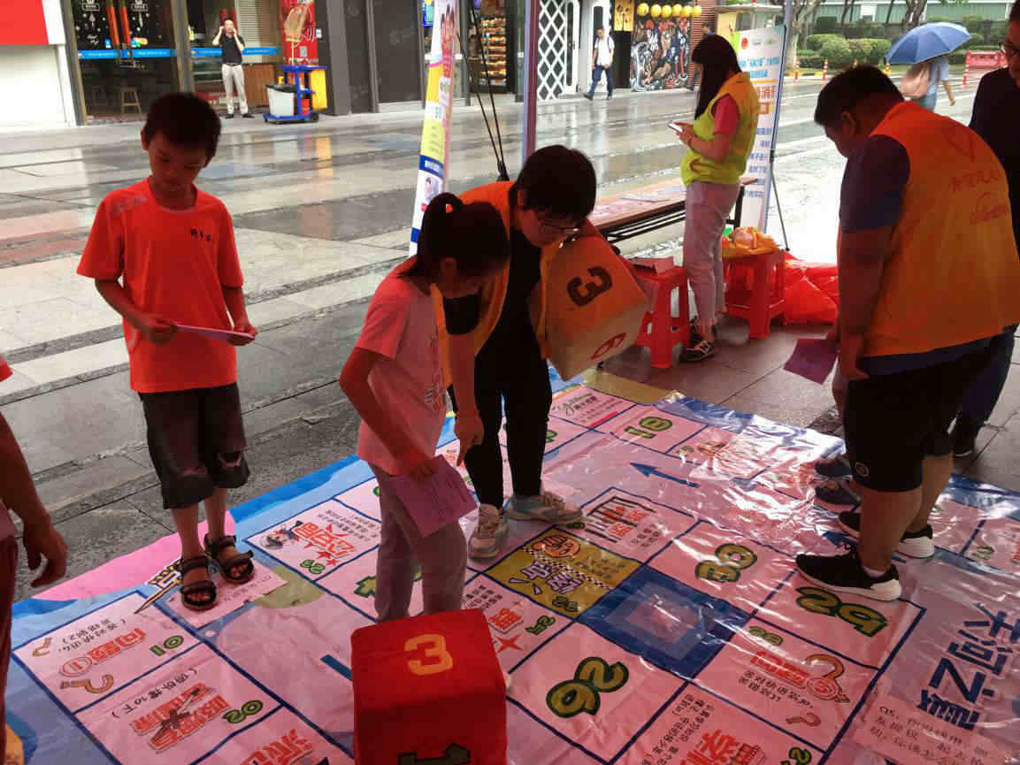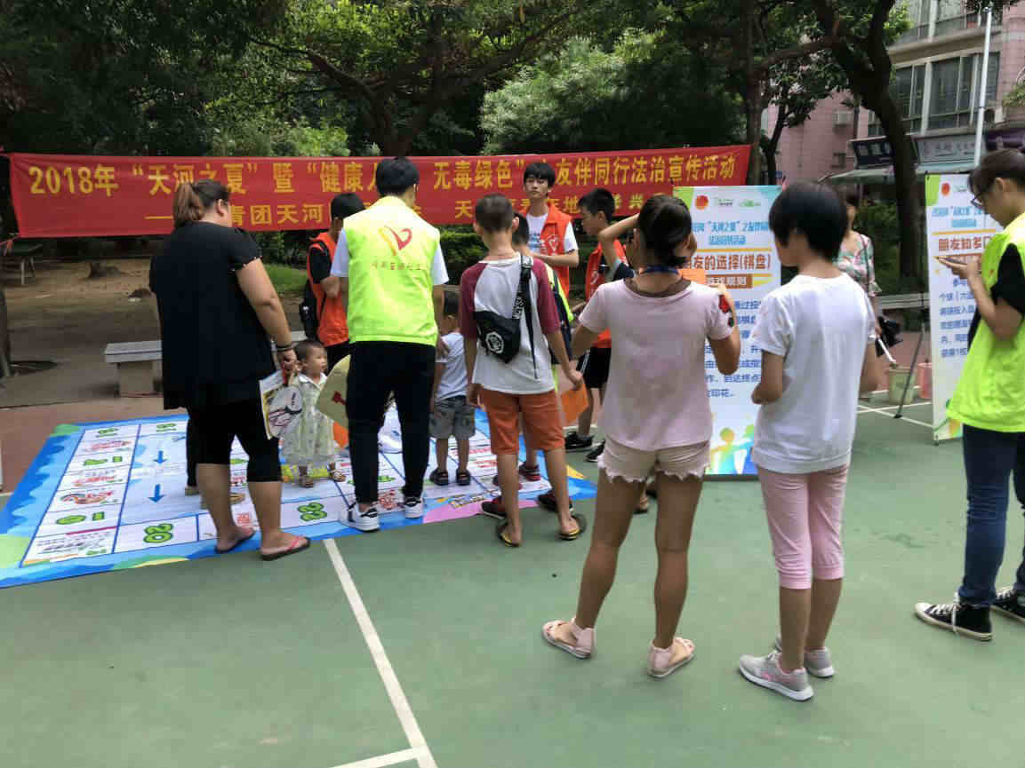 01.朋友知多D 通过设置6个贴有特质的垃圾桶,分别是打架、正直善良、讲义气、理解关心、有帮助、唆使挑拨,引导参与者选择自己最喜欢的三个朋友特质把球扔进去,同时说出理由即可;从而提高青少年对正面朋辈的认知度,引导其建立理性的交友标准。 02.朋友大转盘 通过设置几种社交方式,参与者选择谜题或转动转盘,转到哪个即回答问题及说出理由,此项游戏使用谜题解答形式或转盘进行问答;利用生动有趣的转盘形式,提高参与者的参与积极性,引导青少年选择正确健康的社交方法。 03.朋友走棋盘 在棋盘上设定几个不同的场景:如拉你去喝酒打架、拉你一起弄点钱花,要怎么做并说明理由即可,通过使用幕布棋盘的形式,引导参与者去下棋,走到相关的步骤时回答设定的问题,辨别朋辈交往中的不良行为,提高对不良朋辈所带来的负面影响的认识。 04.解危消消乐 以消消乐形式进行,制作两副Q&A的牌,分上下联,上联的问题对应下联的答案,连起来答案正确即可;引导青少年善于运用身边的资源,强化青少年正面的社会支持网络。 05.营救计划 通过组织同伴,与同伴进行合作的方式,互相协助拯救护卫河对面的“队友”,从而增强青少年的正向朋辈关系,学习青少年与朋辈之间的正向交往方式。 “天河之夏”社区活动游戏新颖,引来各街道众多居民朋友的围观以及热情参与,大家对此类快乐中能够学到知识的活动表示十分的喜欢! 天河区青年地带在团区委的引领与支持下,以2018年“天河之夏”之友伴同行法治宣传活动为契机,通过有趣的社区游戏为载体,营造玩中学习的愉快氛围,提高青少年及居民朋友对法律法规的认识,提升自我法律意识,懂法、知法、守法、护法的社会意识。 历经数月我们已不知不觉进入第六条街道,通过前期的沟通以及协商,打通与街道家综、团工委的联系,搭建紧密有效的合作桥梁,共同为天河区青少年营造积极健康的社区环境。 接下来,青年地带将继续与其他街道进行沟通和合作,真正落实“天河之夏”入天河的21条街道,扩大服务范围以及领域,切实为天河区青少年提供“有嘢玩、有嘢学”的社区服务。