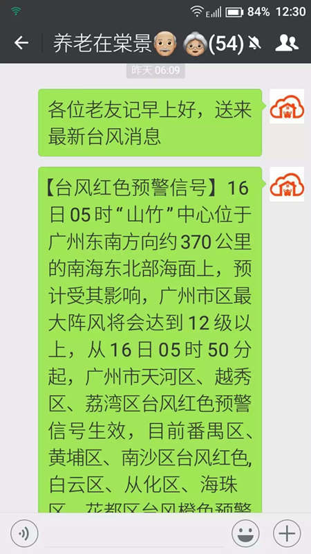 棠景家综、居老中心临时庇护站及时了解辖区防台风工作情况,青宫社工第一时间落实相关安置工作,进行安置床位、食物等安置物品供需。透过微信、QQ、走访、电话等方式,及时发布《棠景街家庭综合服务中心、社区居家养老服务中心庇护站开放通知》,并提醒辖区居民注意安全预防台风,做好避风雨家庭排查工作,同时安排社工24小时全天轮值在岗及电话值班。