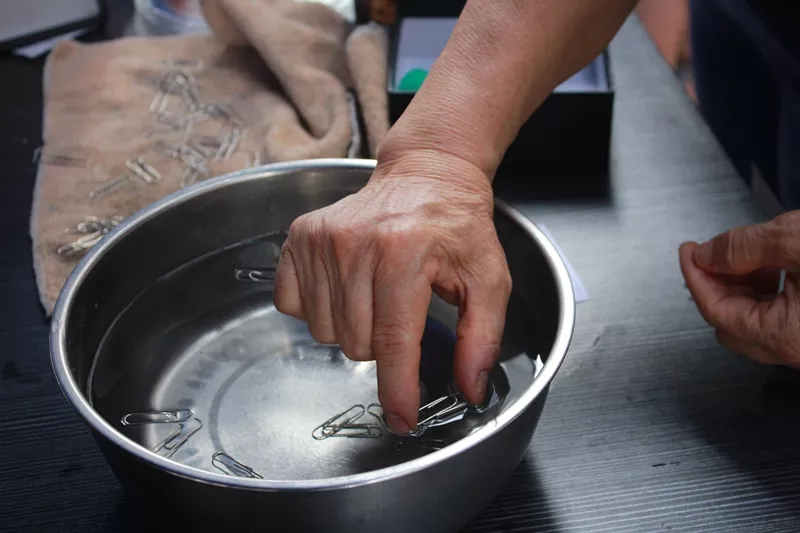 帮助有需要的人,伸出你的手拉上一把,就像这个小游戏,让回形针漂在水面上。看着容易,试过之后才发现原来不简单。有些回形针能一帆风顺地浮在水面,有些沉在水底的回形针却需要你的手把它捞上来,让它重新浮在水面。无论如何,它都需要你伸出手,试一试。帮助特殊家庭,让我看看,你们的手在哪里?