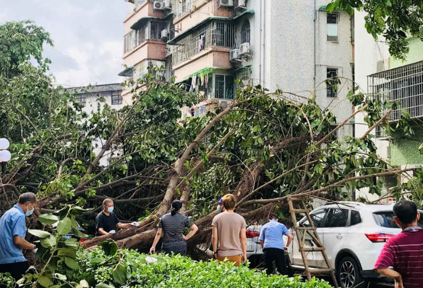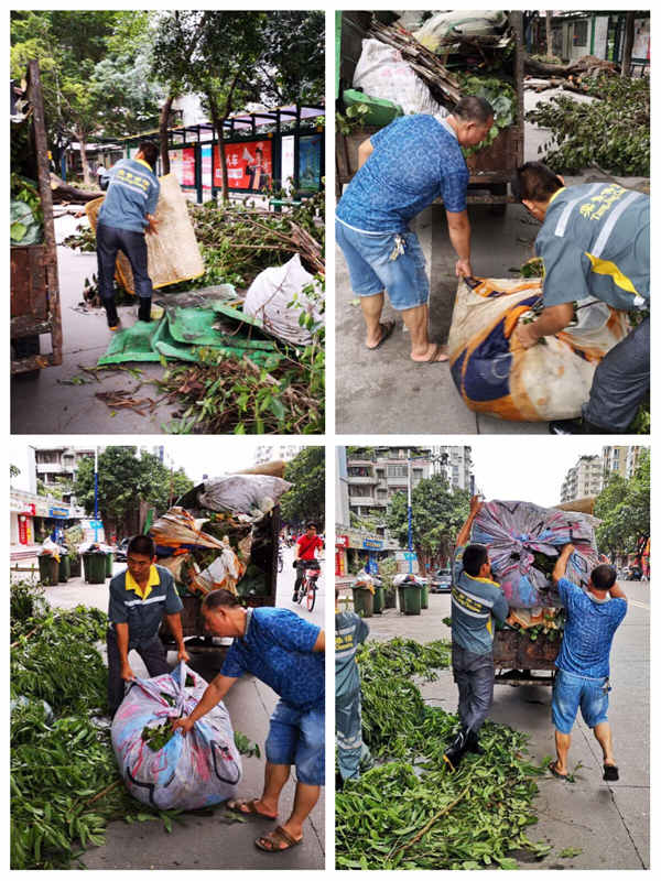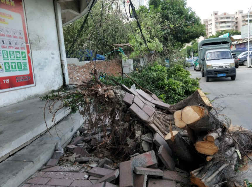 棠景街的路边,一棵棵树被风吹倒,不幸在树下的车子受灾严重,店铺的招牌也被吹得摇摇晃晃的,看着触目惊心啊! 风雨过后,为了大家的安全出行,环境卫生,我们的身边都不时浮现这些美丽的身影。