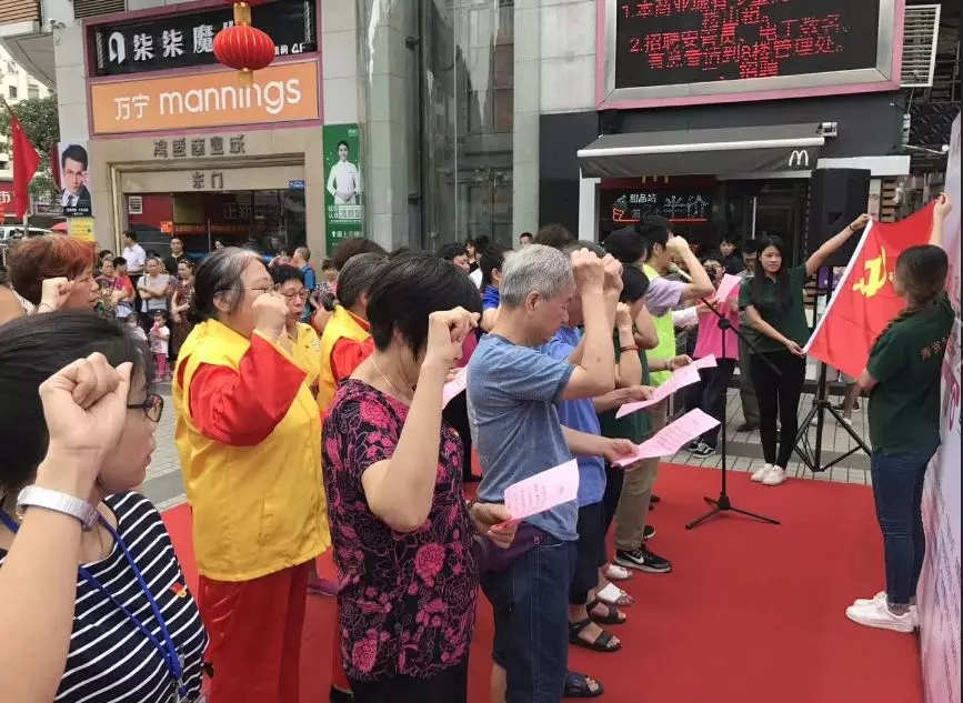 为了增强党员的使命感和责任感,活动过程还有棠景街党工委书记赖小惠、广州市青宫社会工作服务中心党支部书记李学斌带领棠景街的居民党员代表、棠景家综社工党员代表上台重温入党誓词,不忘初心,牢记使命!