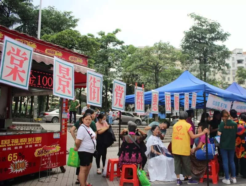 “原来是棠景街家庭综合服务中心的社工在此开展党群惠民服务日。有节目看,还有活动可以参加,赶快叫上邻居一块来!”