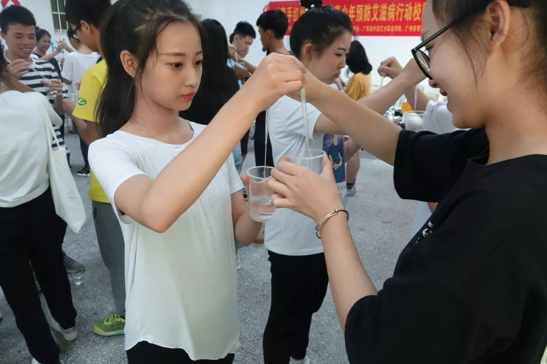 同学们通过三轮水交换(每轮水交换代表没有防护的高危性行为)体验艾滋病的传播速度和传播途径。同学们从刚开始水交换时的平静,到接受检测后(溶液变红)发现被感染的惊讶、恐惧,他们表示从没有想到组内会有这么多组员被感染,也没想到不使用安全套带来的后果会如此严重。虽然只是个游戏,但是也提醒大家安全性行为十分重要,既是对自己的保护,也是对他人的保护。