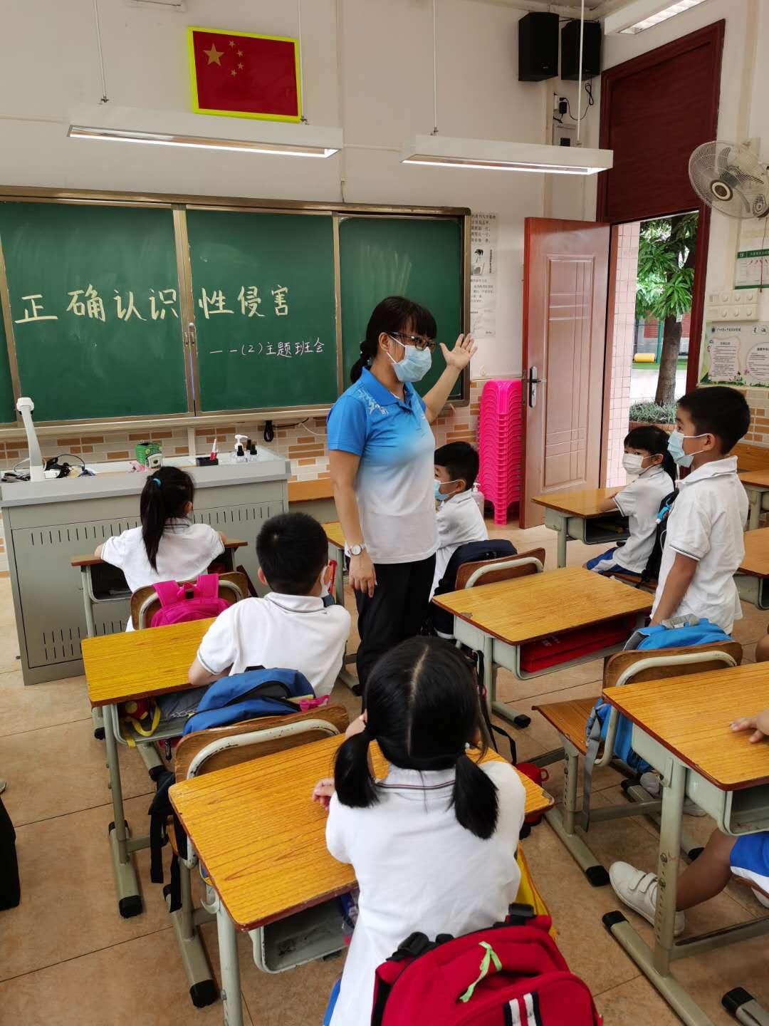 本次安全保护教育班会共884名学生同时参与,各班级的学生都认真的观看了安全保护教育宣传视频。观看后,当各班老师在课室里进行提问时,很多学生都举手发言,并抢着回答,表明大部分学生对视频所讲到的“性侵”方面知识的吸收效果十分好。