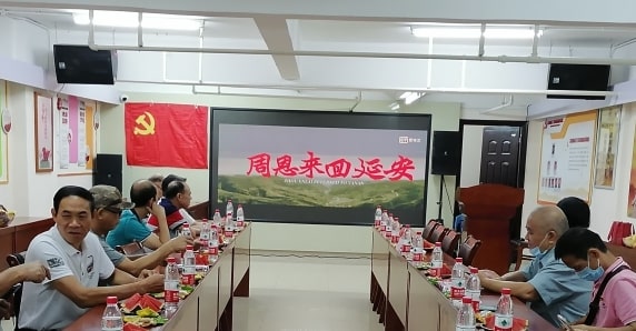 退役军人们共同观看红色电影《周恩来回延安》。电影再现了周总理回到延安的20小时真实经历,展现了“人民总理爱人民,人民总理人民爱”的感人画面。同时也展现了以周恩来同志为代表的中国共产党人的初心和使命。
