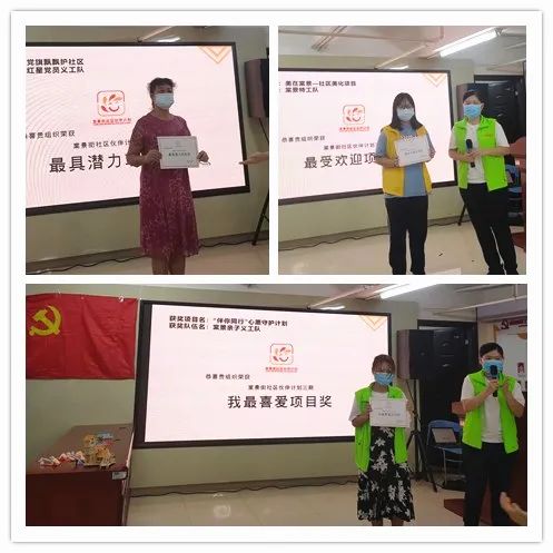 经过激烈的投票争夺战,结果如下: 最受欢迎项目奖——由“美在棠景”社区美化计划项目夺得; 我最喜爱项目奖——由“伴你同行”心愿守护计划夺得; 最具潜力项目奖——由党旗飘飘护社区项目夺得!