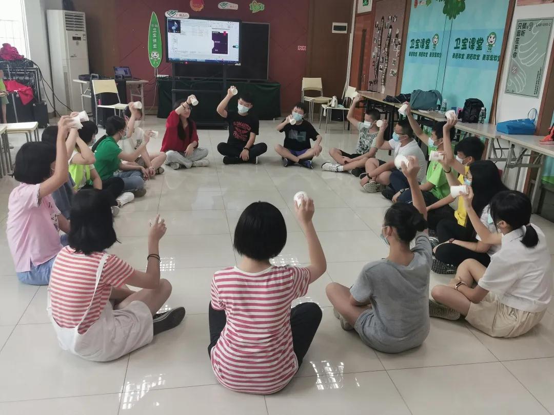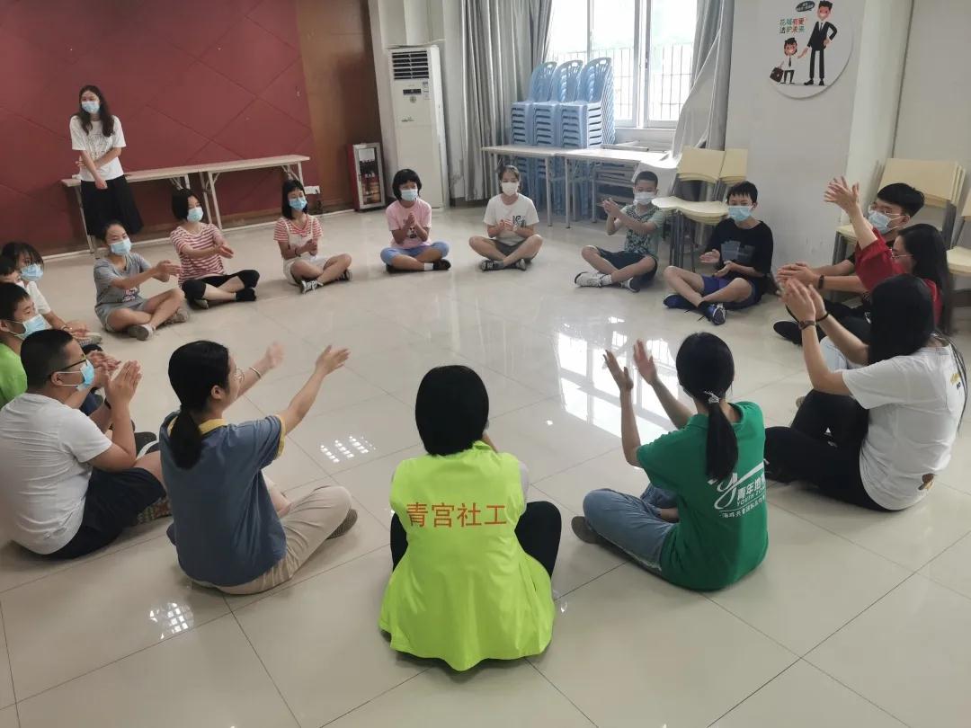 现在青少年面临着各式各样的课业、考试,学业压力较大,但大多数青少年没有一个合适的渠道去宣泄自己的压力。为协助青少年缓解学习压力所带来的困扰,增强社会适应性,2020年8月25日,越秀区青年地带与广州市12355青少年服务平台合作,邀请钟莉萍老师开展了一场“乐享阳光”音乐支持团体活动。老师先通过节奏律动,让12名青少年放松心情,尽快融入新环境、新团体。随后老师通过“我的名字是莉莉,你的名字是什么”的句式进行自我介绍接龙,并用纸杯打节拍、传递等方式,让参与的青少年融入音乐支持的服务环境中。之后,由社工各自带领组员开展音乐分享,引起组内的共鸣,感受小组内支持的力量流动。活动中,青少年刚开始比较拘束、甚至紧张,但在音乐的引导下,较快的融入团体,互相认识,再一起开心地分享音乐、诉说感受,最后结束时彼此发自内心的拥抱,都使青少年获得安全感,放松心情,同时促进他们的社会化。