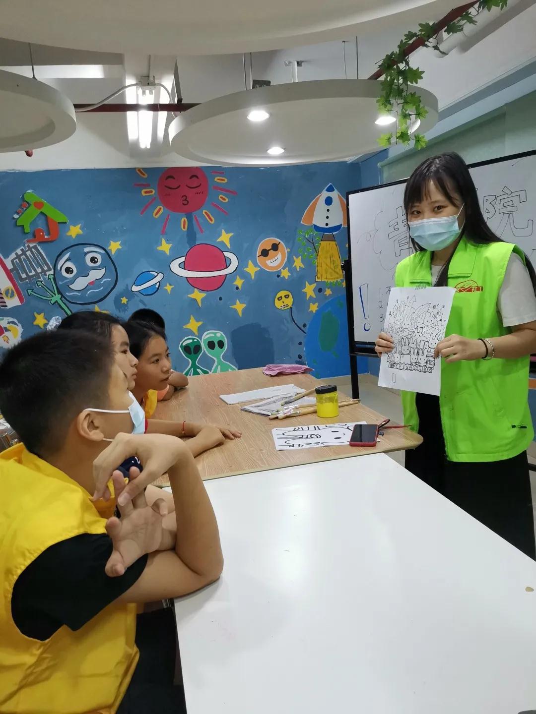 童鞋们发挥创意小宇宙,共同创作文明城市主题漫画。邓老师在旁引导和“把关”。