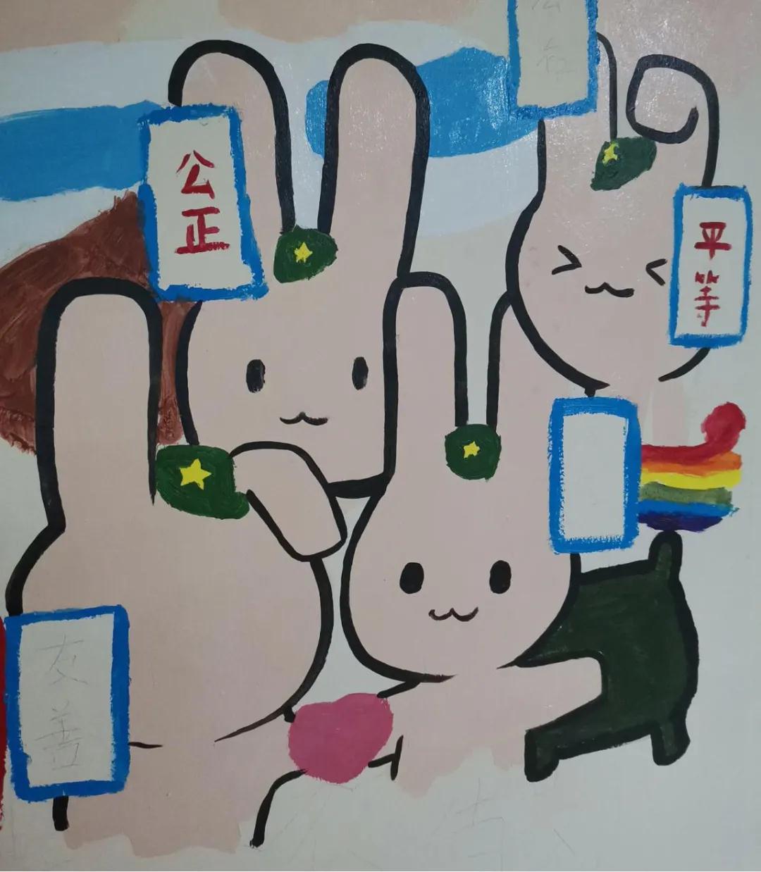 选好代表对应核心价值观的“小兔子”后,童鞋们就开始动笔,先在纸上试验上色,注意颜料上色均匀,还有避免留白喔。