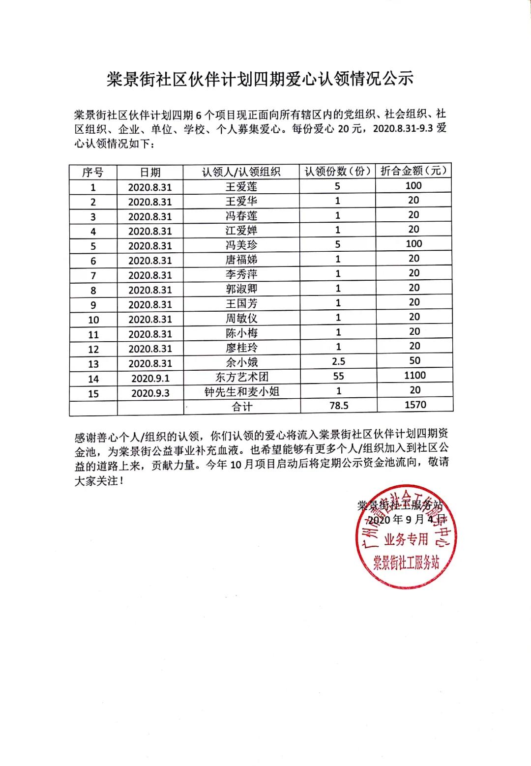 截止到2020.9.2,社工站收到以下居民的善款,认领爱心情况如下: