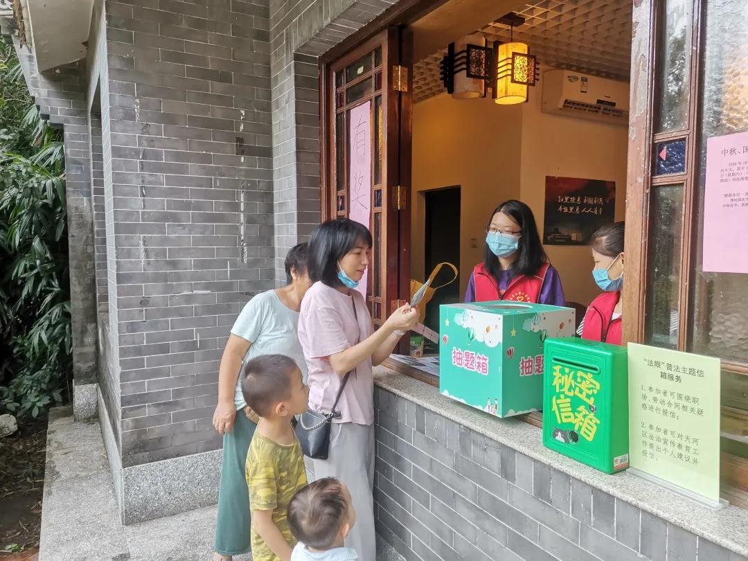 法宣工作不间断!天河区法治文化公园(天河公园)将持续发挥基层法治宣传窗口和阵地作用,组织开展不同类型、不同专题的法治宣传活动与公益律师咨询服务,等待各位游园居民的参与!