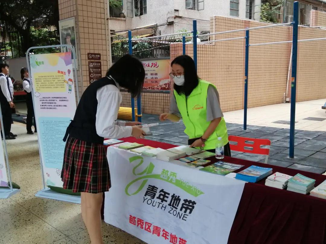 为迎接广州市第27个成人宣誓日,由越秀区新时代文明实践中心、共青团越秀区委员会、越秀区教育局主办,越秀区征兵办、越秀区禁毒办、越秀区献血办、越秀区青年地带协办的2020年广州市越秀区成人宣誓仪式在广州市贸易职业高级中学隆重举行。本次成人宣誓仪式活动中,越秀区青年地带特别准备了法治伴成长、唯“毒”你不亲、心理驿站三个互动摊位,引导学生们更多地了解法律知识,提升社会责任感。